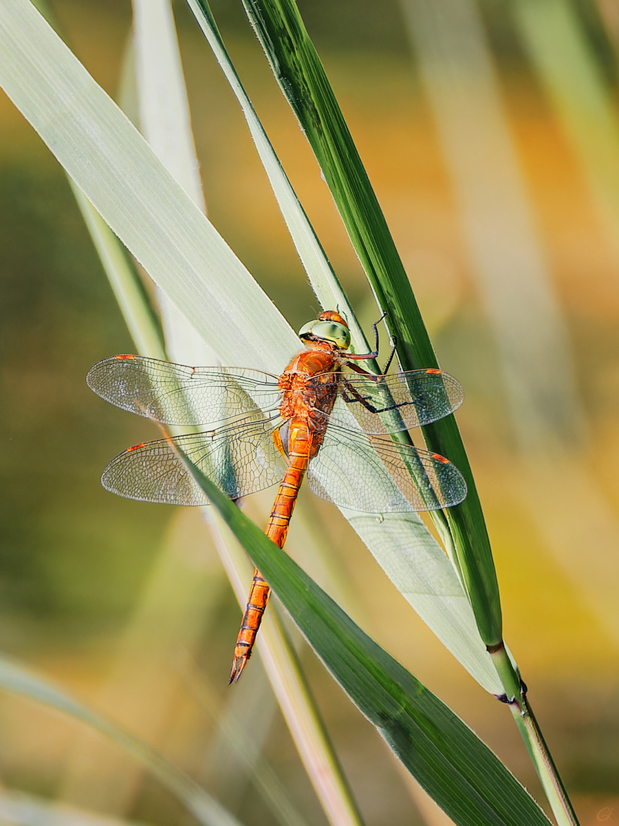 Der Name kommt von dem gelben Fleck auf Segment 2, hinter den Flügeln, oftmals auch als Dreieck. Grüne Augen.