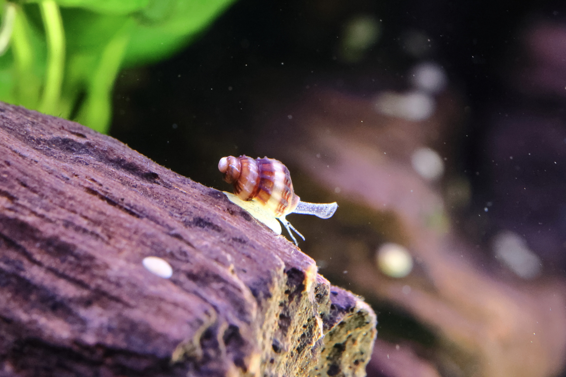 Und weil das Aquarium auch noch andere Bewohner hat, stelle ich hier noch eine der Raubturmdeckelschnecken (Clea Helena) vor. Größe in Real ca. 5mm, da relativ jung.